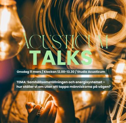 Välkommen till Acusticum Talks! Temat denna gång är: Samhällsomställningen och energisystemet – hur ställer vi om utan att tappa människorna på vägen?